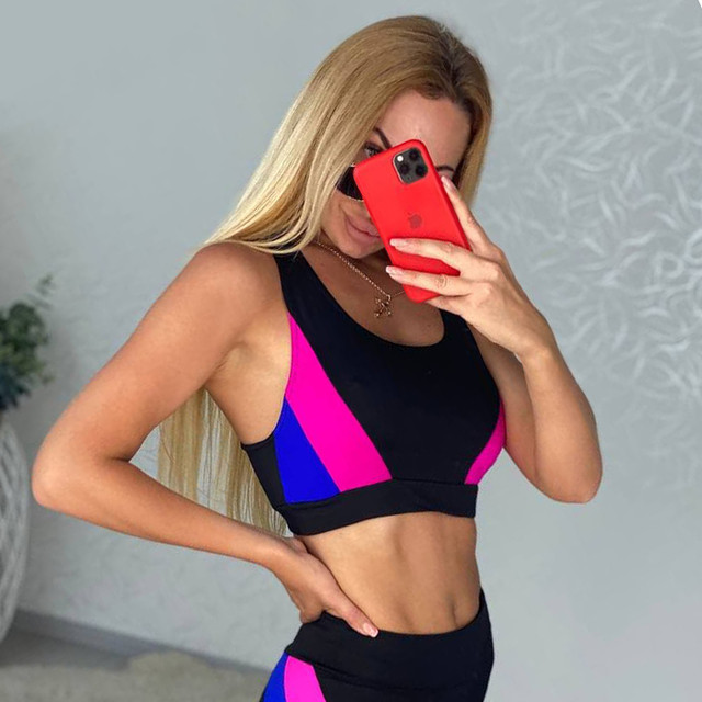 Чорний спортивний топ із яскравими вставками рожевий + синій